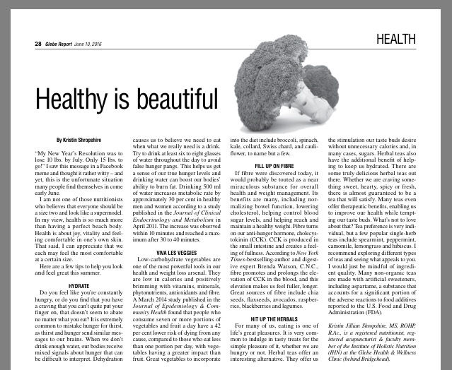 Healthy Is BeautyKristin ShropshireOct 6, 20161 min read This article can be found on pg. 28 of the June 2016 edition of the Glebe Report: http://www.glebereport.ca/wp-content/uploads/2016/06/GR_June-2016-web.pdf#articles #hydration #water #veggies #fibre #herbal #tea #nutrition #beauty